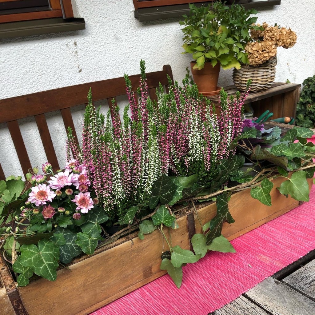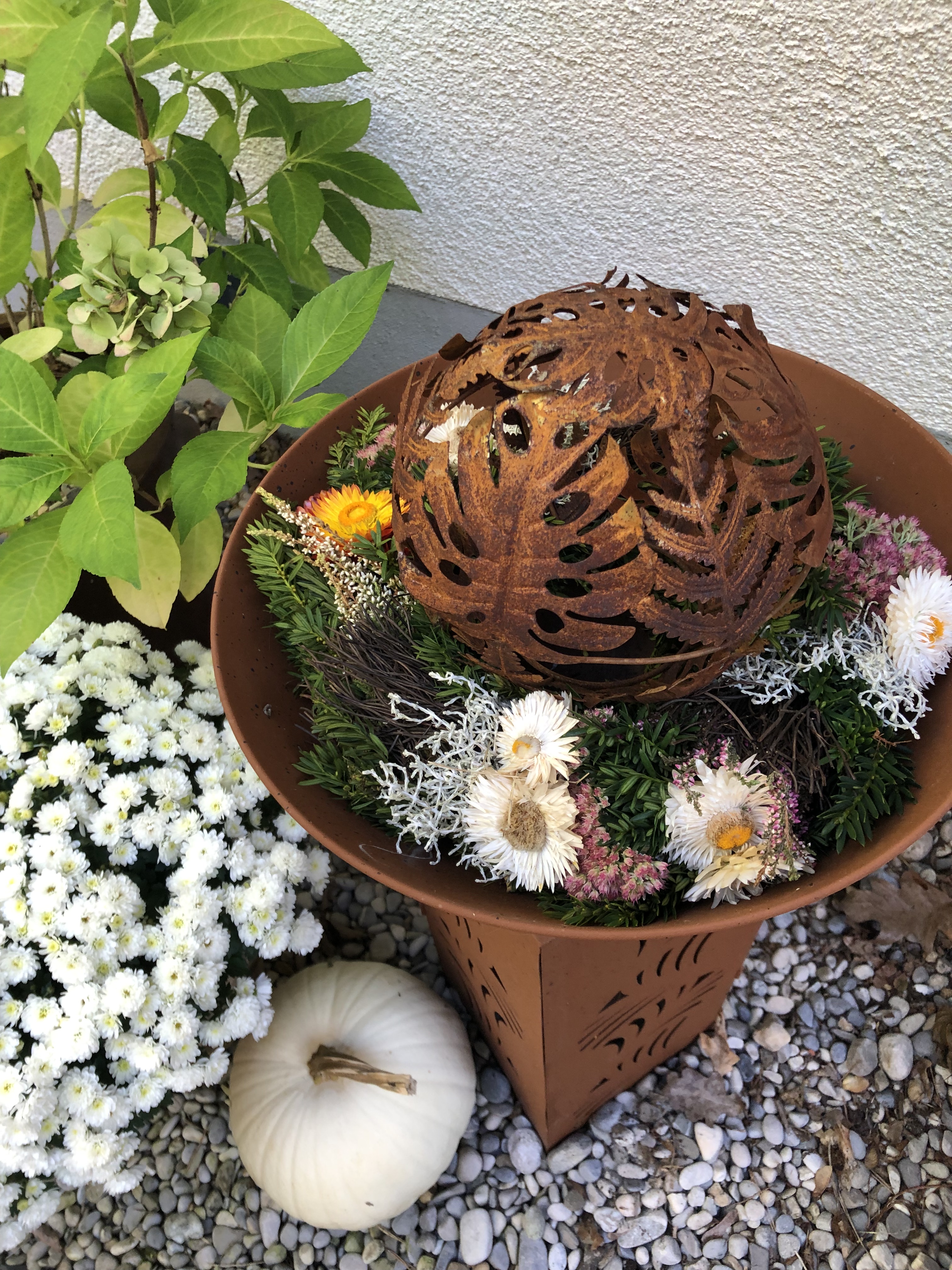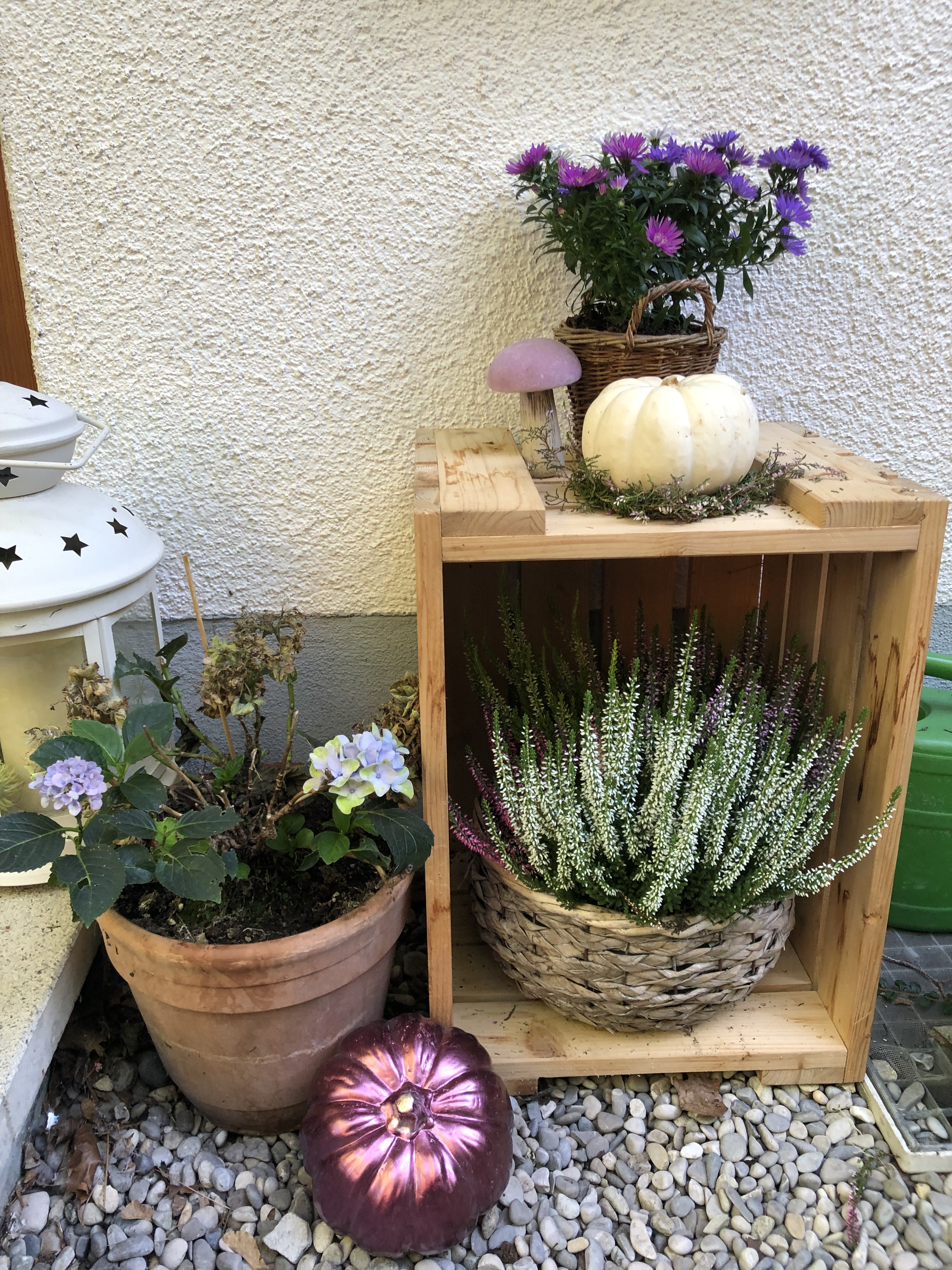 Auch auf der Terrasse und am Eingang ist der Herbst eingezogen – hier überwiegend in Form von Beerentönen. Früher musste die Herbstdeko bei mir immer orange sein, davon bin ich in den letzten Jahren eher abgekommen.