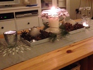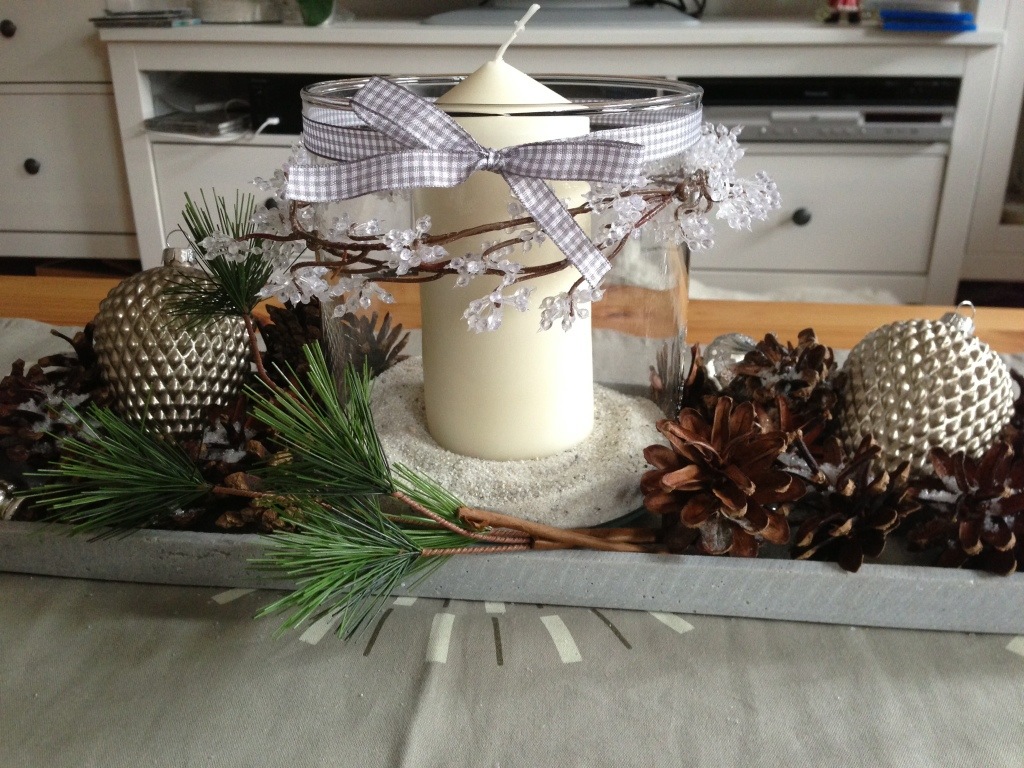 Dieses Jahr habe ich eine Kombination aus Silber, Weiss und Braun gewählt. Dazu natürlich Kerzen, denn auch wenn die Tage langsam länger werden, es ist schon noch recht früh dunkel.