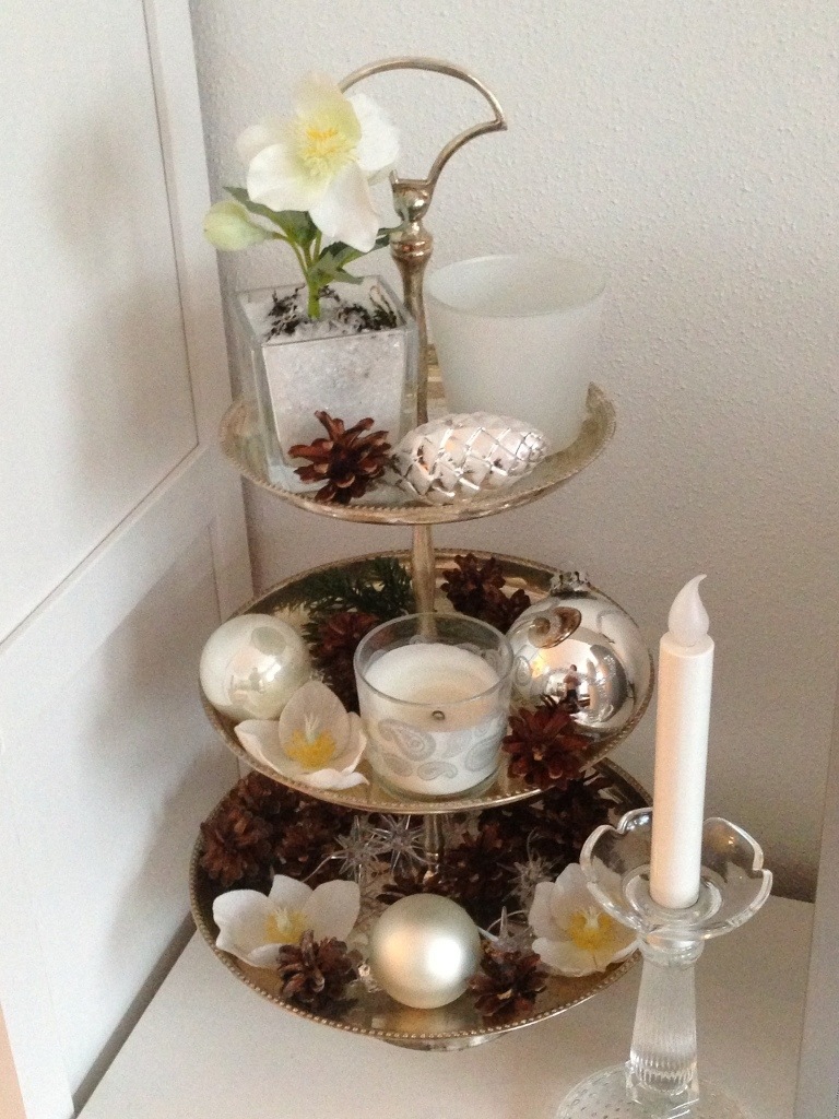 Die Weihnachtsdeko ist wieder im Keller verstaut, der Baum abgeschmückt und auf einmal sieht es so kahl und leer aus ? Nicht bei mir, wie jedes Jahr kommt nach Weihnachten die Winterdeko. Dazu sehe ich mich gerne im Abverkauf der Weihnachtsdeko um, denn so ein bisschen Glitzer gehört bei der Winterdeko für mich dazu. Die eine oder andere silberne Kugel findet sich, gerne auch Kiefernzweige, Zapfen, Christrosen und das eine oder andere schöne Dekoobjekt aus Bauernsilber.
