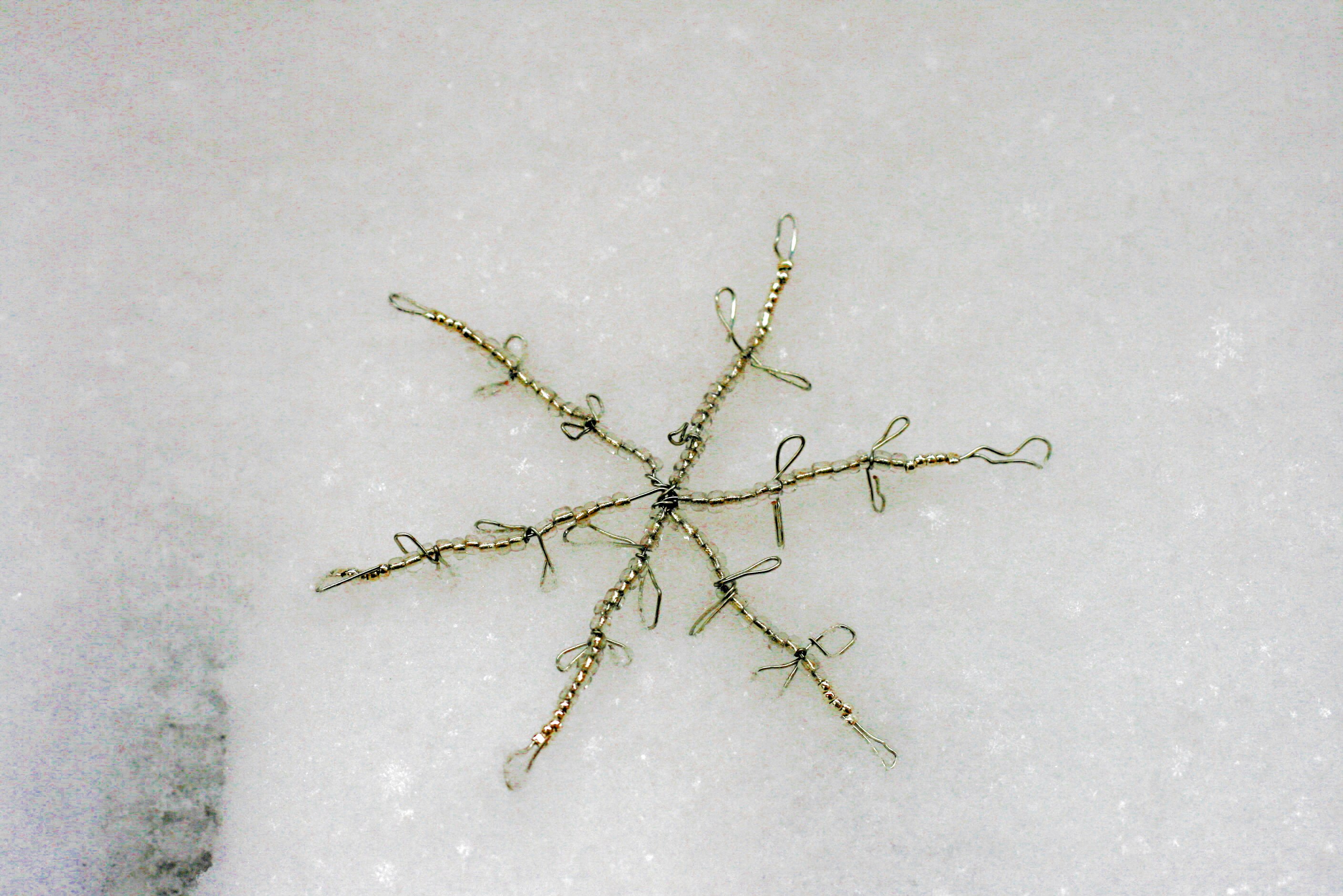 Auch wenn ich eigentlich schon mehr vom Frühling träume kann ich doch der zauberhaften weißen Winterwelt auch ein bisschen was abgewinnen und habe mich daher heute von Schneeflockenmotiven inspirieren lassen. Ich habe sogar einen kleinen Eiskristall selbst gebastelt, aus Silberdraht und Rocailleperlen. Jetzt muss nur noch die Sonne wieder scheinen, damit er schön am Fenster glitzert. Und um Licht ins Dunkel zu bringen wurden meine Teelichtgläser um ein weiteres mit Schneeflocke ergänzt.