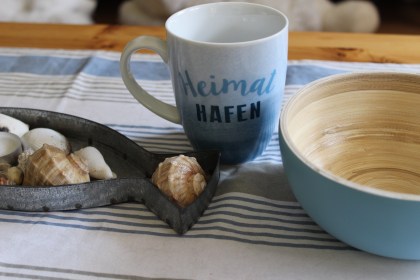 Um mir das Meer nach Hause zu holen habe ich zu sommerlichen Temperaturen nun einfach wieder neu dekoriert. Das Geräusch der Brandung denke ich mir einfach dazu ….