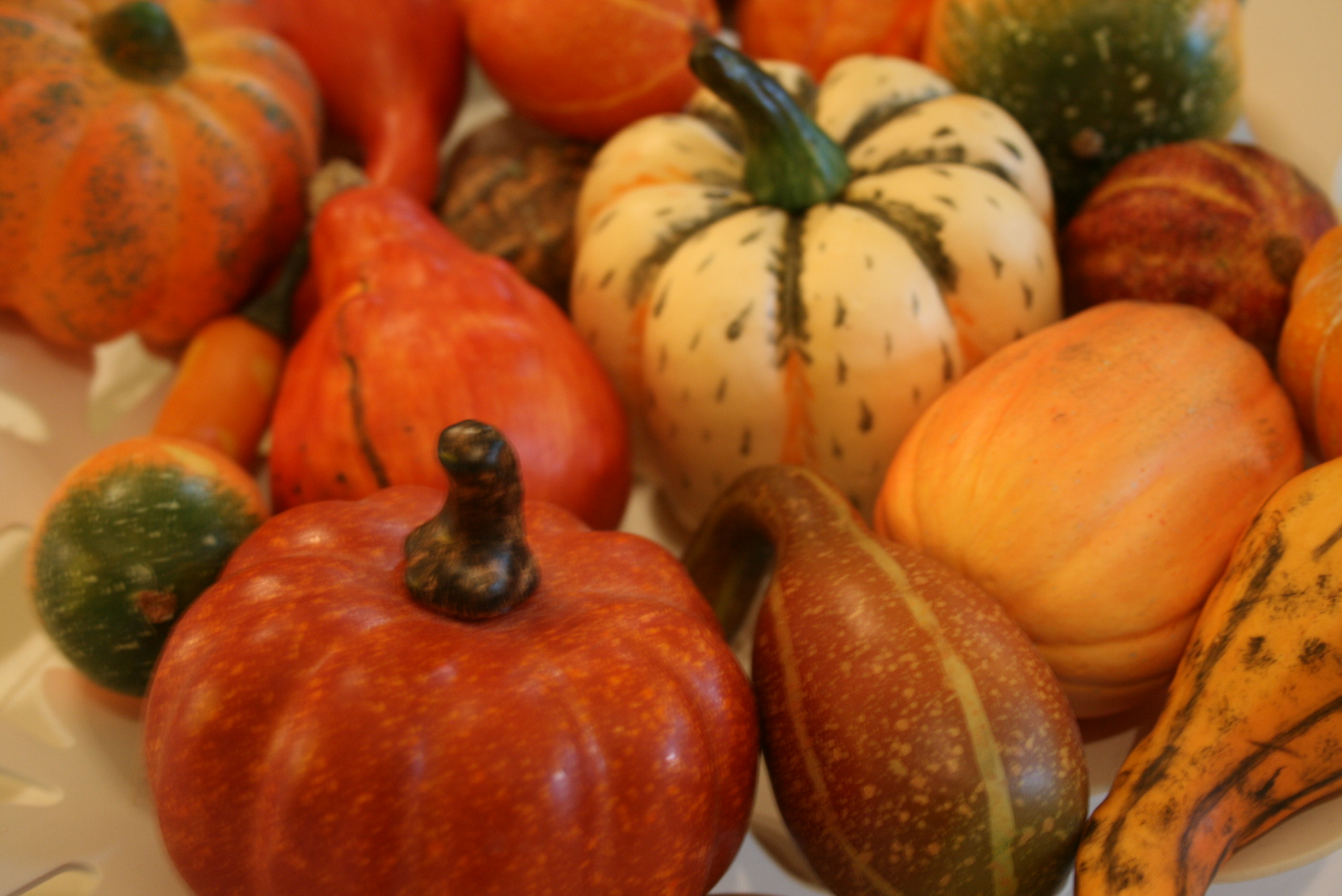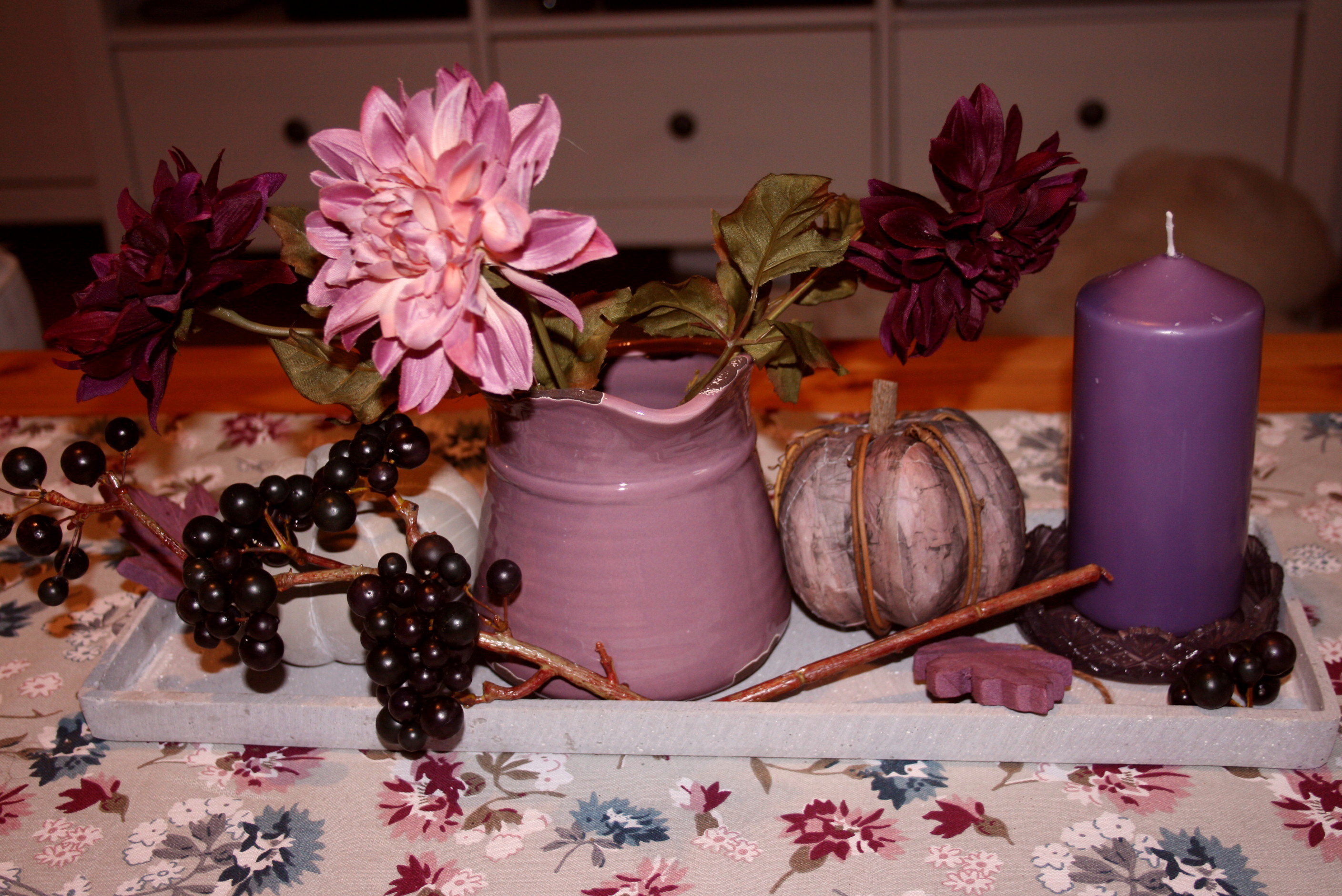 Ich liebe den Herbst mit seinen Orangetönen, die wir in Kürbissen, Beeren und Blumen finden. Und auch das Dunkelrot und Purpur, sanfte Farben, die doch einen trüben Tag zum Leuchten bringen.
