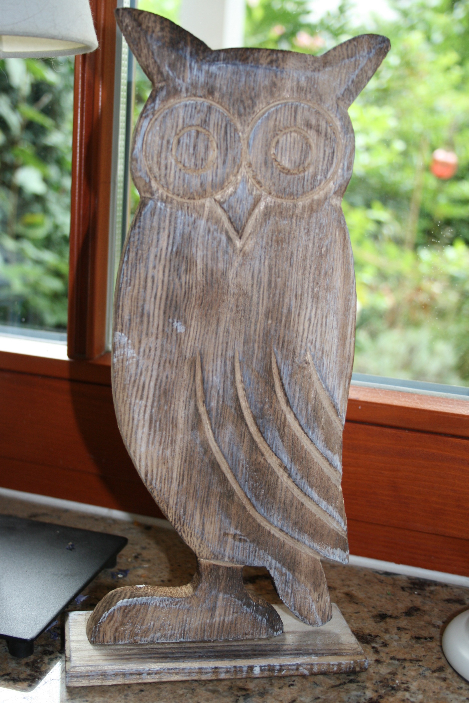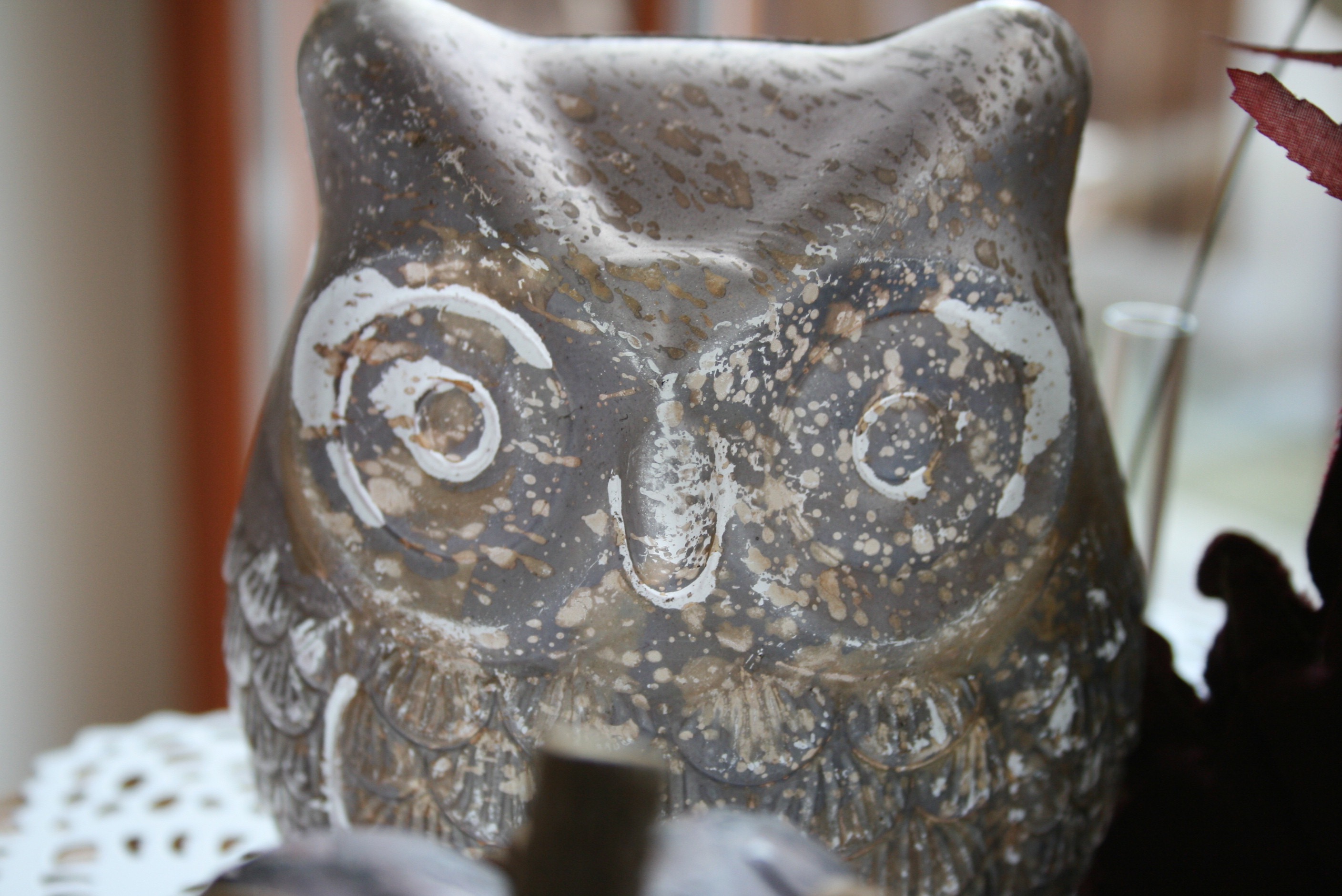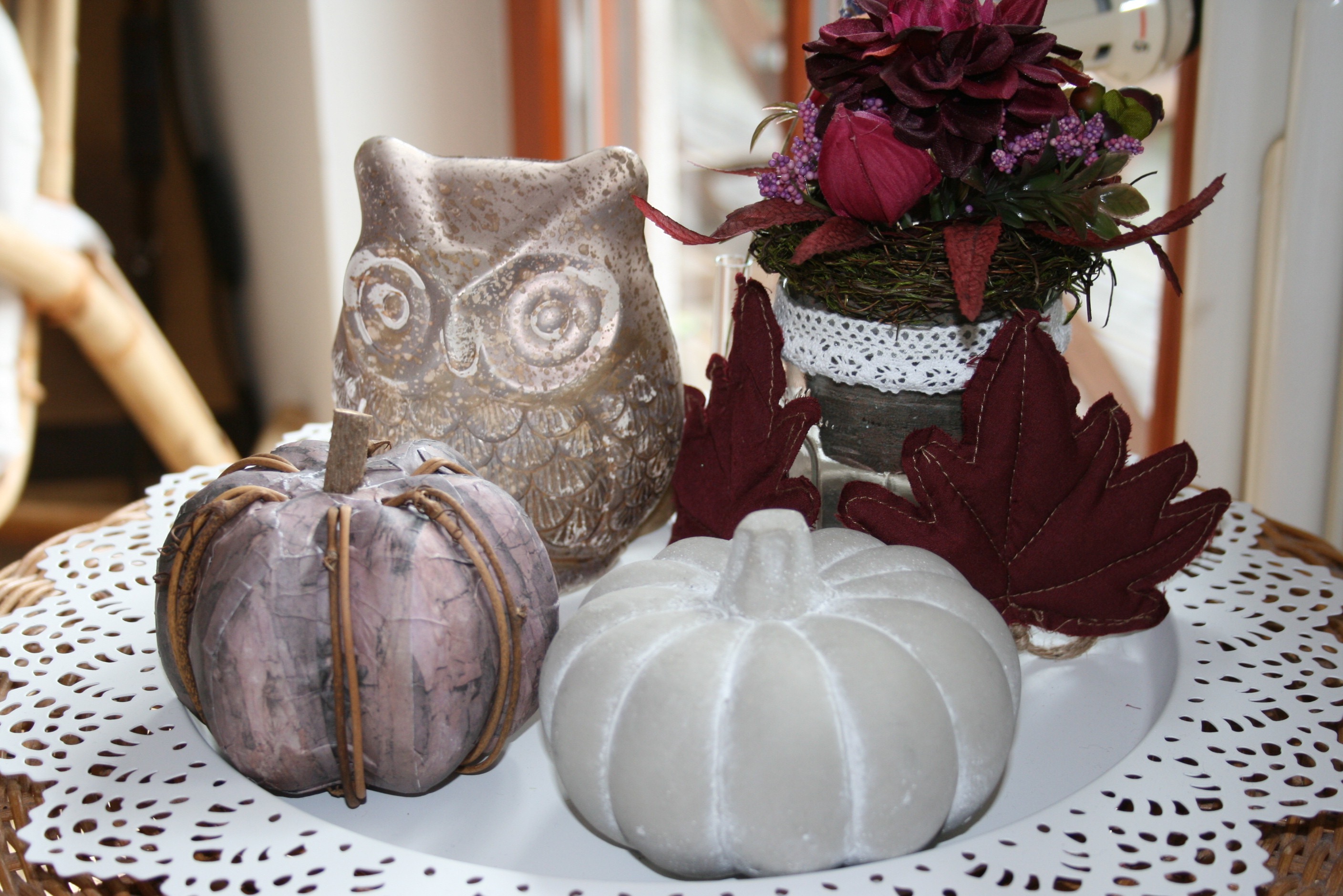 Also weg mit Muscheln und Leuchttürmchen und her mit etwas Herbstlichen. Für orange leuchtende Kürbisse und buntes Herbstlaub ist es aber draußen vor dem Fenster noch zu grün, also zog etwas Neues bei uns ein. Ich habe mir sozusagen den Wald mit seinen Früchten und Bewohnern ins Wohnzimmer geholt. Netterweise kommen die Dekoläden meiner Leidenschaft für Eulen auch sehr entgegen.